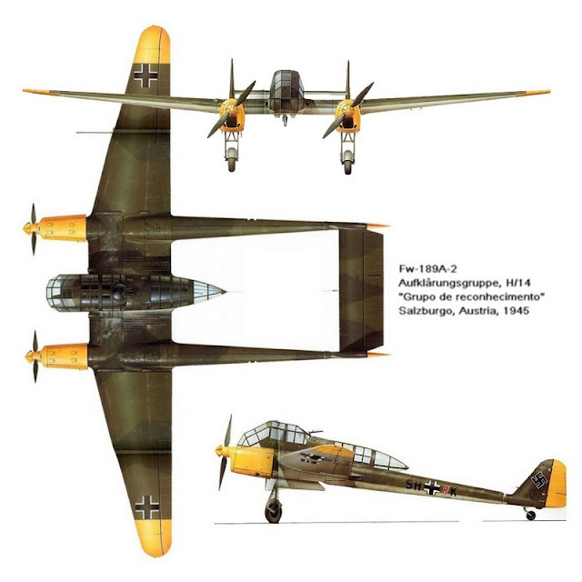 | O Focke-Wulf Fw 189 foi um avião alemão de reconhecimento, apoio e caça noturno durante a Segunda Guerra Mundial. Fabricado pela Focke-Wulf, atendia uma requisição da Luftwaffe, para um aparelho que pudesse substituir os antigos biplanos de reconhecimento. O modelo era dotado de uma célula central quase toda envidraçada, que possibilitava uma visão total dos ocupantes, facilitando as missões de reconhecimento. Recebeu da Luftwaffe o apelido de "Uhu" (Coruja), mas por causa de sua célula central envidraçada, a imprensa alemã apelidou-o de "Fliegende auge" (Olho voador). Foram fabricados no total 864 aviões em várias versões, que operaram durante toda guerra. | |||||