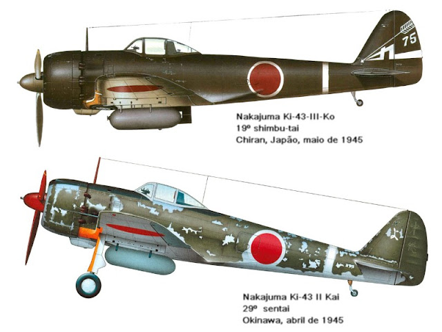 . | O Nakajima Ki-43 Hayabusa ("Falcão Peregrino") foi um caça usado pela Força Aérea do Exercito Imperial Japonês durante a segunda guerra mundial. Era designado nos relatórios Aliados por "Oscar", mas oficiosamente era designado por "Zero do exercito" pelos pilotos americanos devido à sua semelhança de perfil com o Mitsubishi A6M Zero da Marinha Imperial, diferindo essencialmente pela carlinga mais “limpa”, que a do Zero. Pilotos aliados relatavam frequentemente que o Ki-43 era extremamente ágil e difícil de atingir, mas que bastavam alguns projeteis certeiros para o destruir. Apesar das suas fragilidades, o Ki-43 abateu mais aviões aliados do que qualquer outro caça japonês. | |||||