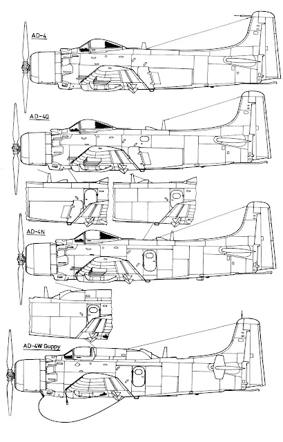 Seguiu-se a AD-4 que seria a mais produzida e que dispunha de um motor mais potente Wright R3350-26WA Duplex-Cyclone, alterado posteriormente para AD-4B com quatro canhões M3 de 20mm, em vez dos dois das versões anteriores e tinha capacidade para transportar uma bomba nuclear Mark 7 de 770kg ou Mark 8 de numa baia reforçada na fuselagem. (construídas 372 aeronaves AD-4, 165 AD-4B, 307 AD-4N, 39 AD-4Q e 168 AD-4W).