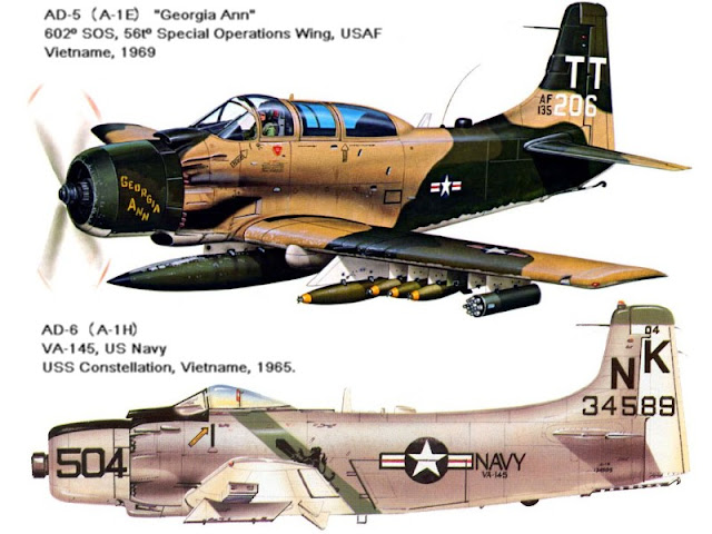 Os Skyraider da US Navy estavam entre as primeiras aeronaves a realizar ataques ao Vietname do Norte com a escalada do conflito, em 1964.