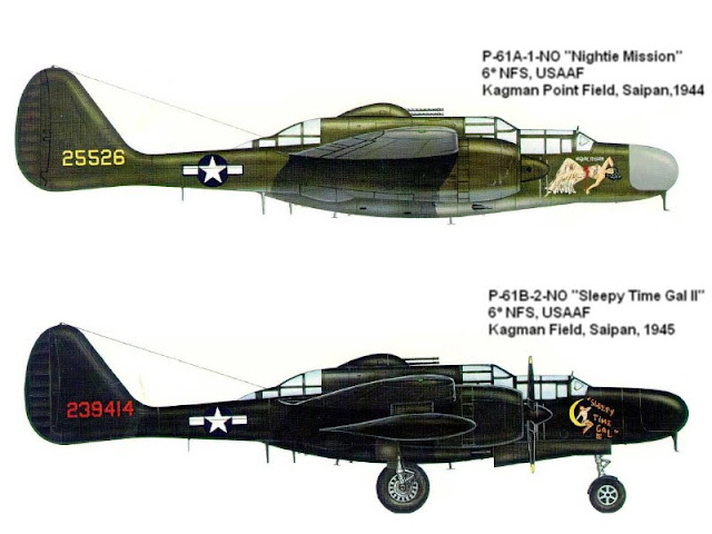 Posteriormente várias unidades de P-61 foram baseados na Nova Guiné e nas Filipinas, a partir de onde realizavam incursões noturnas contra aeródromos japoneses participando inclusive na invasão de Iwo Jima em fevereiro e março de 1945 e de Okinawa entre abril e junho de 1945.